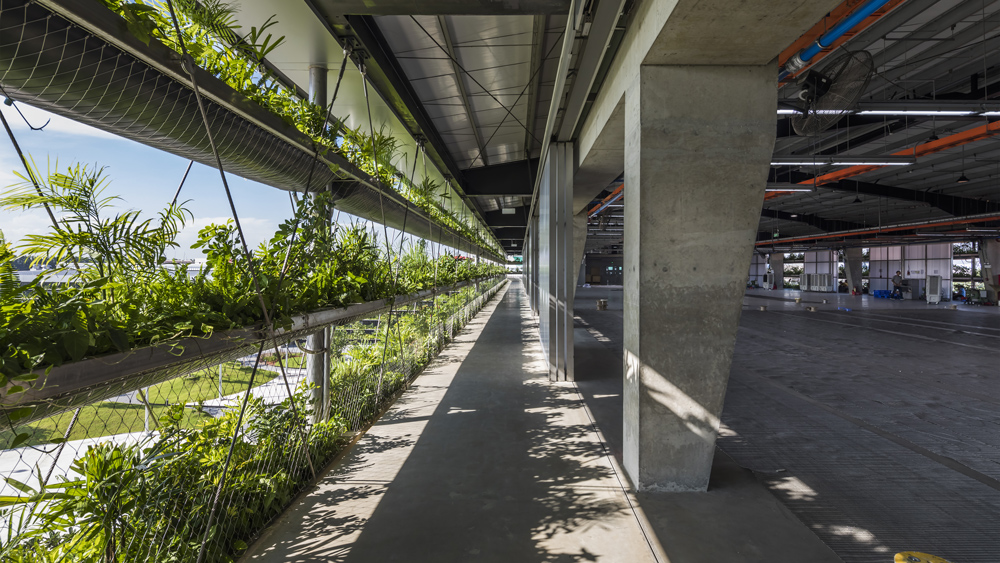 Este sistema de soporte híbrido de cable de acero inoxidable y Webnet© representa una matriz única que distingue a la fábrica de Jakob Rope Systems como una demostración e ícono para edificios sostenibles de este tipo en un clima tropical.