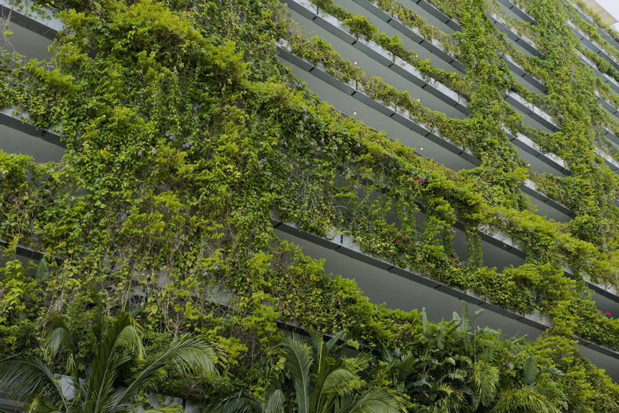 - Precisión de Ingeniería: El sistema enrejado personalizado de Jakob soporta la geometría espaldera específica visualizada por Jean Nouvel mientras acomoda los patrones de crecimiento de Buganvilias nativas y Pasifloras.