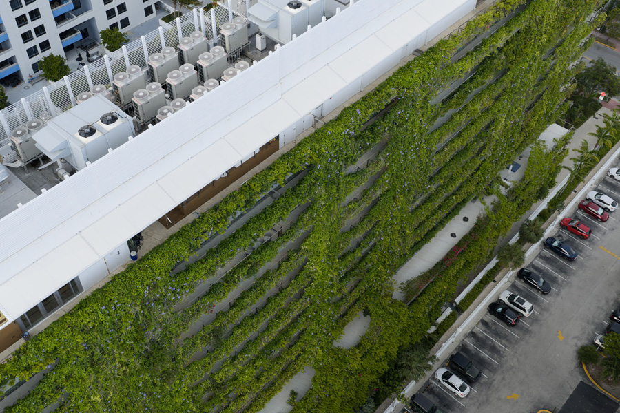 - Impacto Ambiental: Las fachadas norte y sur funcionan como filtros naturales de aire, creando paisajes biodiversos que limpian pasivamente el aire urbano de Miami a través de capas de flores, plantas y hojas.