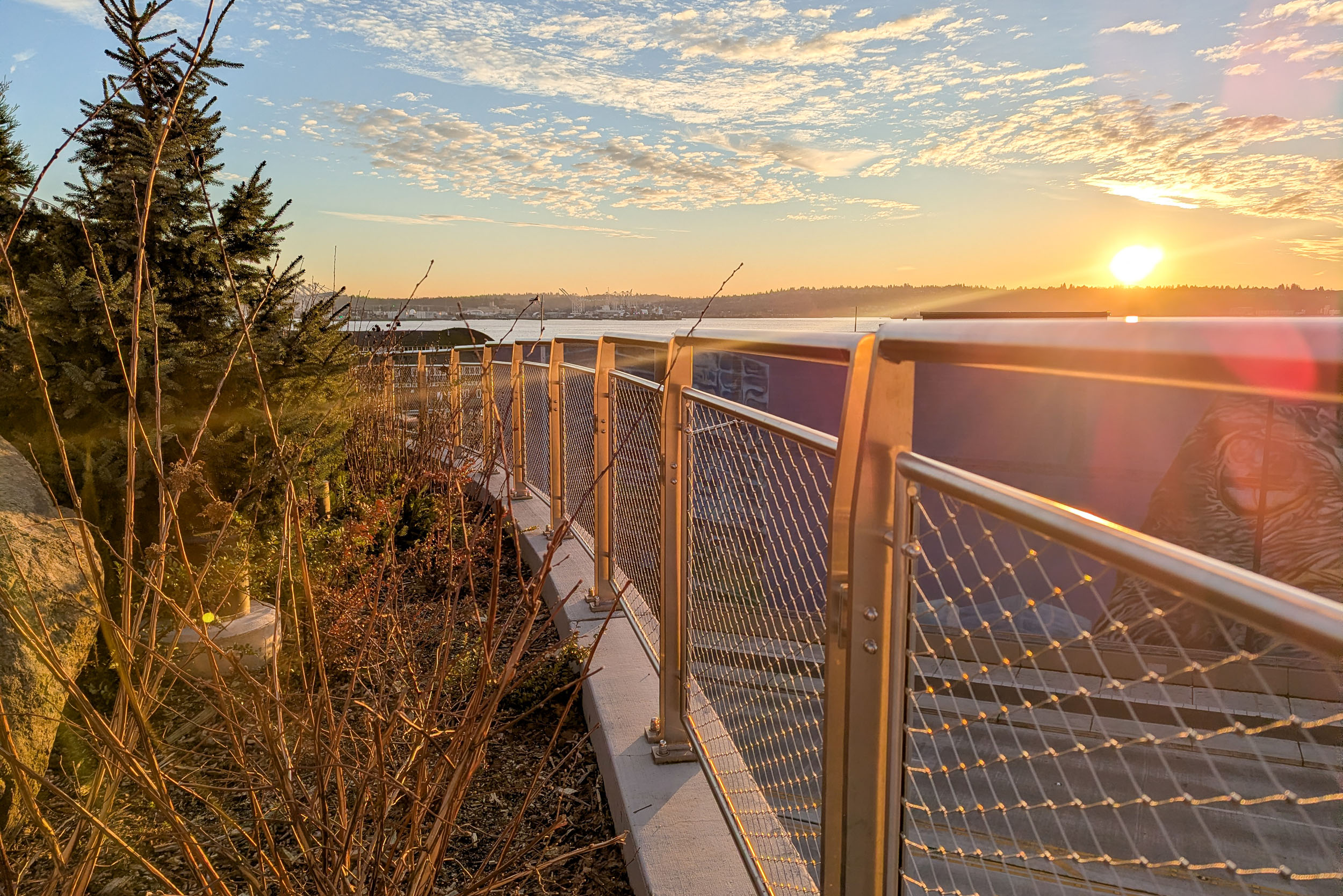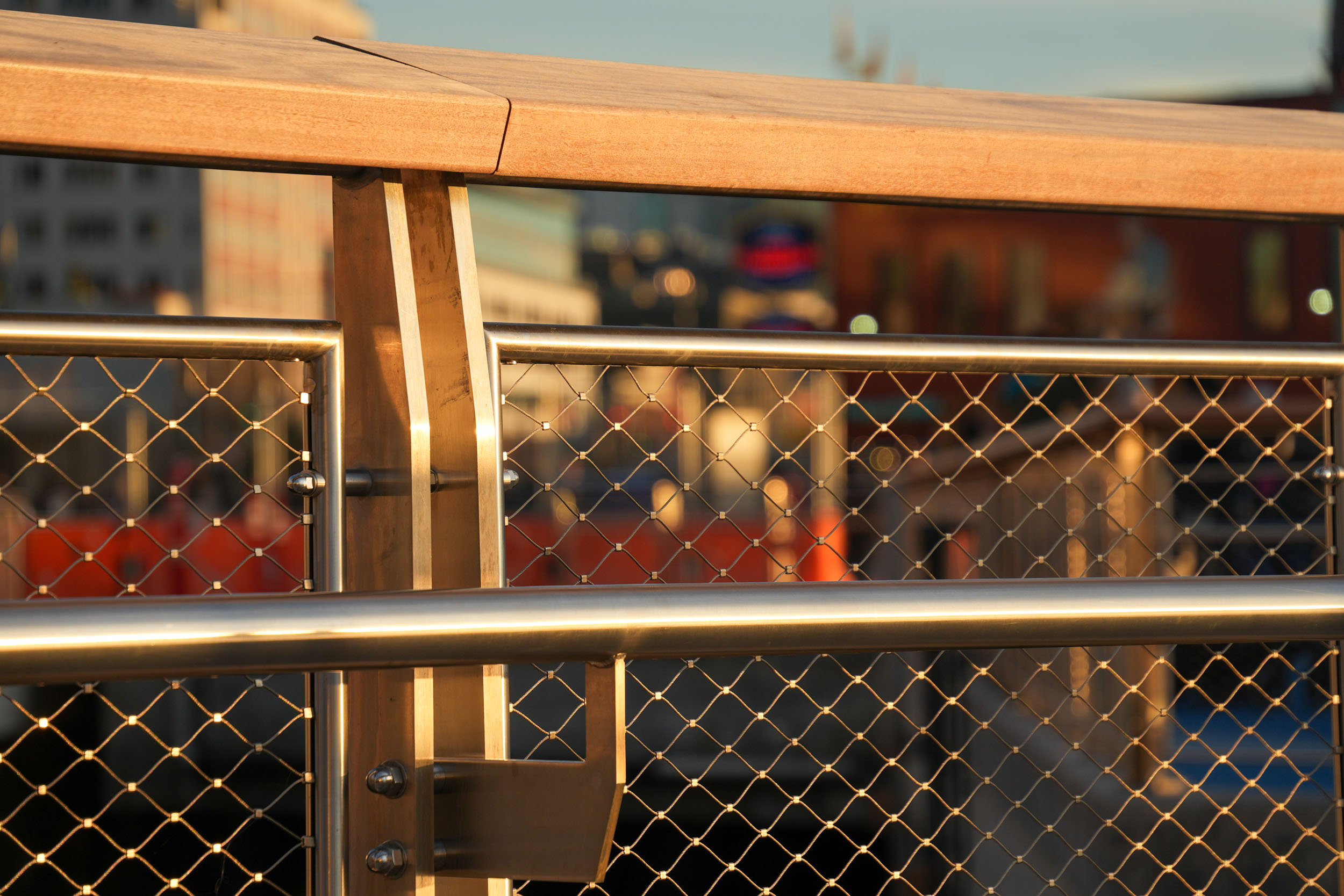 La malla Webnet proporciona protección contra caídas conforme a normativas mientras mantiene transparencia visual. Incluso a corta distancia, los visitantes ven la bahía Elliott, no el sistema de barreras. El diseño de malla abierta permite el flujo natural de aire, reduciendo las cargas de viento a lo largo de los 180 metros de instalación.