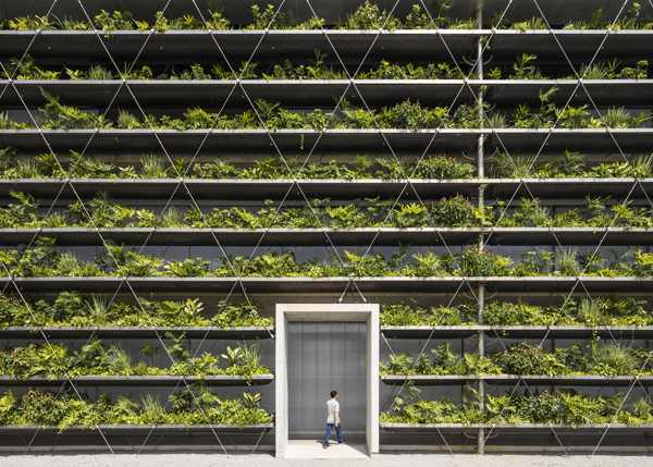 El proyecto Monad Terrace ilustra el potencial de los muros verdes en aplicaciones residenciales de alta gama. Los sistemas de cables y malla de Jakob crean soporte sofisticado de plantas que mejora la estética moderna del edificio mientras proporciona a los residentes aire de mejor calidad y aislamiento natural.